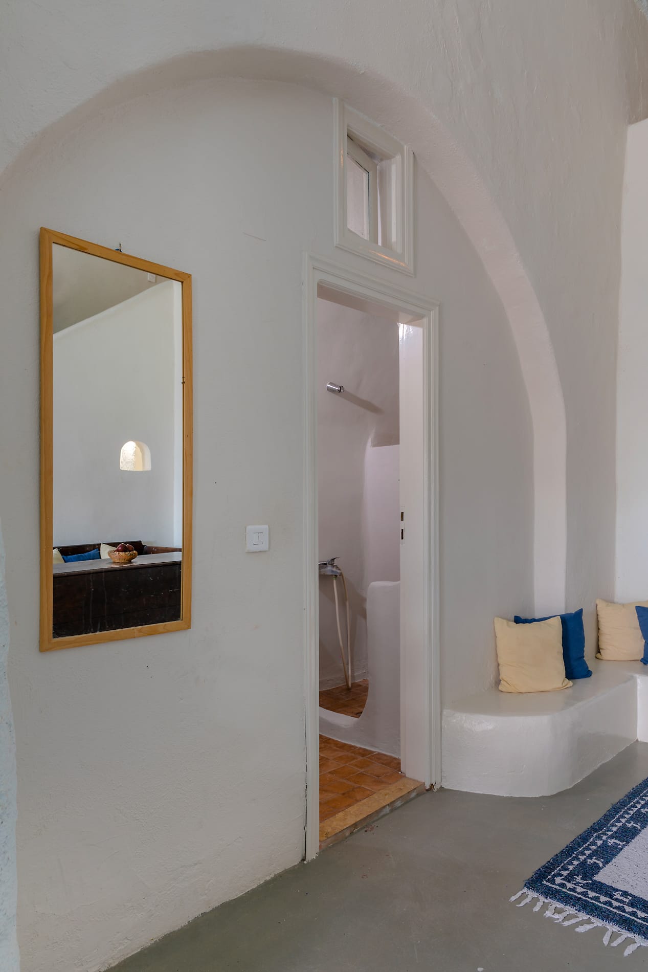 This loft-style cave has 4 single beds upstairs & 3 bunk beds for 6 guests downstairs. It is our largest cave with 2 bathrooms, a lounge area, fridge, lockers & a/c. The cave is 250 years old, it originally served as a stable!